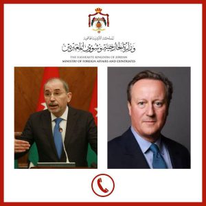 اليوم الخميس 28-3-2024 بحث نائب رئيس الوزراء ووزير الخارجية وشؤون المغتربين أيمن الصفدي هاتفيا، اليوم الخميس، مع وزير الخارجية البريطاني ديفيد كاميرون، جهود التوصل لوقف فوري لإطلاق النار وإنهاء الكارثة الإنسانية في غزة.