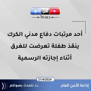 هذا وكانت إذاعة الأمن العام قد تلقت اتصال من والدة الطفلة أشادت بما قام به الغطاس الحواتمة ووجهت شكرها الجزيل له عبر أثير أمن إف إم لإنقاذه طفلتها من الغرق والذي كان متواجدا بالصدفة في نفس المكان أثناء إجازته مع عائلته …