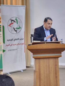وبين أن العمل الحزبي مكفول ومحمي بالانظمة والقوانين، وان نهج الدولة يتجه الى انجاح العملية الديمقراطية من خلال نجاح العمل الحزبي، مؤكدا ان حزب النهج الجديد حزب سياسي برامجي يمتلك رؤية وتطلعات وبرامج سياسية واقتصادية واجتماعية قابلة للتطبيق ويسعى جاهدا الى تحقيقها على ارض الواقع.
