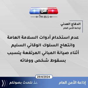 وأشار الملازم أول محمد الخطاطبة في حديثه لإذاعة الأمن العام إلى أبرز الحوادث التي تم التعامل معها والاستجابة لها حيث تعاملت كوادر مديرية دفاع مدني وسط عمان مع حادث سقوط شخص يبلغ من العمر 51 عاما عن الطابق السابع في عمارة مكونة من 7 طوابق في منطقة الجاردنز أثناء قيامه بأعمال صيانة ما أدى إلى وفاته على الفور اثر تعرضه لإصابات بالغة بدورها عملت فرق الإسعاف على إخلائه إلى احد المستشفيات ،، وفي محافظة اربد تم التعامل حريق شب داخل مطعم ف لواء الرمثا حيث عملت فرق الإطفاء والإسعاف المتخصصة في مديرية دفاع مدني شرق اربد ونتج عن هذا الحريق إصابة ثلاثة أشخاص اثنين منهم بضيق في التنفس اثر استنشاقهم الغازات المنبعثة عن الحريق وإصابة بحروق مختلفة .. حث عملت فرق الإسعاف على تقديم الإسعافات الأولية للمصابين ونقلهم إلى مستشفى عبدالله المؤسس وعلل سبب الحريق بتسرب الغاز من إحدى الاسطوانات داخل المطعم .. وفي محافظة الزرقاء تم التعامل مع حريق مستودع يستخدم لتخزين الفحم في منطقة الهاشمية حيث عملت كوادر الإطفاء في مديرية دفاع مدني الزرقاء على إخماد الحريق والسيطرة عليه بالكامل ومنع امتداده دون وقوع أي إصابات ..