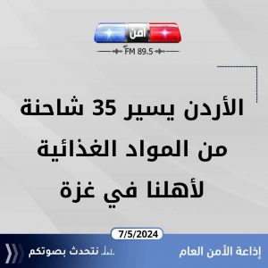 عمان – 07/05/2024: سيرت القوات المسلحة الأردنية (الجيش العربي) وبالتعاون مع الهيئة الخيرية الأردنية الهاشمية قافلة مساعدات غذائية جديدة إلى أهلنا في غزة، بالشراكة مع برنامج الغذاء العالمي (WFP) وعدد من المنظمات الخيرية الدولية.