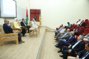 وعرض الخوالدة لواقع البحث العلمي والابتكار في الجامعة، وسبل وكيفية الارتقاء بجودة الأبحاث العلمية والتوجهات الاستراتيجية للأبحاث والمراكز البحثية وفرص التمويل.