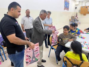 وخلال تفقد مرافق المركز وزع رئيس البلدية و مندوب الاذاعة الهدايا على الطلاب و على الكادر المسؤول عن المركز