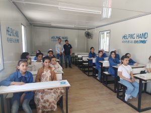 مدير العمليات في منظمة يد العون للإغاثة والتنمية هشام الزايد بين لإذاعة الامن العام وبإتصال هاتفي ان المنظمة ومن خلال مديرية تربية محافظة المفرق وبتعاون اذاعة الأمن العام ومتابعتها لهذه القضية قامت وعلى بتامين المدارس المذكورة بغرف صفية وهي عبارة عن كرافانات معزولة تناسب الظروف الجوية في فصلي الصيف والشناء وتتسع إلى 28 طالب ومجهزة بجميع ادوات العملية التعليمية بالإضافة الى مراوح وكولر ماء ومكتب ولوح كتابي ومرافق صحية مزودة بخزان مياه لاستيعاب الاكتظاظ الطلابي في الغرف الصفية ودورات المياه