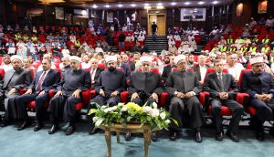 وحضر الاحتفال الذي اشتمل على وصلات إنشادية قدمتها فرقة الوزارة، سماحة قاضي القضاة عبد الحافظ الربطة، والمفتي العام للمملكة الدكتور أحمد الحسنات، ومفتي القوات المسلحة العقيد إمام حسن مخاترة، ومفتي الأمن العام الدكتور العميد سامر الهواملة، وإمام الحضرة الهاشمية الدكتور احمد الخلايلة، ورئيس مركز التعايش الديني الأب نبيل حداد، وأمين عام وزارة الأوقاف الدكتور عبدالله العقيل، وأمناء ومدراء عامون، ومساعد الأمين العام لشؤون الدعوة والتوجيه الإسلامي، ومدير الوعظ والإرشاد، ومفتون، وقضاة الشرع الشريف، وضباط، وضباط صف من القوات المسلحة الأردنية-الجيش العربي والأجهزة الأمنية، وأئمة ووعاظ وخطباء وواعظات.