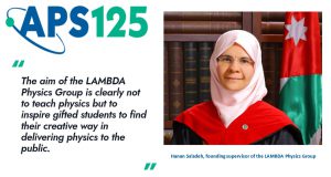 وقد أسّست مجموعة LAMBDA للفيزياء في الجامعة الأردنية الدكتورة حنان سعادة عام 2015، سعيا إلى إلهام الجيل القادم من العلماء والمعلمين والمهندسين في الأردن لنشر الإثارة في الفيزياء.