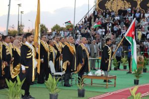 وخاطب الدكتور الخرابشة الخرجين قائلاً لهم أنتم تقفون على أعتاب مرحله جديدة من حياتكم لقد كانت سنواتكم مليئة بالإجتهاد والتعلم والتحديات التي ساهمت في تشكيل شخصيتكم وإثراء معارفكم وأنتم اليوم ثمرة العمل الجاد والمثابرة وأمامكم طريق طويل نحو المستقبل لكننا على يقين بأنكم تحملون في أنفسكم قوه الإرادة والعزيمة التي ستساعدكم في مواجهة كافة التحديات والصعوبات التي قد تعترض طريقكم .