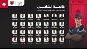 وضمت القائمة: يزيد أبو ليلى، نور بني عطية، عبدالله الفاخوري، يزن العرب، عبدالله نصيب، سعد الروسان، محمد أبو النادي، حجازي ماهر، حسام أبو ذهب، إحسان حداد، يوسف أبو الجزر، عامر جاموس، محمد أبو حشيش، رجائي عايد، نور الروابدة، إبراهيم سعادة، نزار الرشدان، محمد أبو زريق، محمود مرضي، مهند سمرين، مهند أبو طه، عارف الحاج، موسى التعمري، أحمد عرسان، علي علوان، عبدالله العطار، إبراهيم صبرة، ويزن النعيمات.