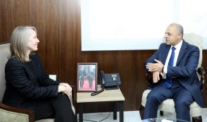 استقبل وزير الدولة لتطوير القطاع العام، الدكتور خير أبو صعيليك في مكتبه بدار رئاسة الوزراء، امس الأحد، المنسّقة المقيمة للأمم المتحدة في الأردن، شيري ريتسيما أندرسون.