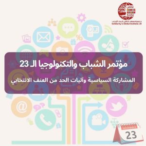 تنطلق يوم السبت المقبل فعاليات مؤتمر الشباب والتكنولوجيا الـ 23 تحت عنوان “المشاركة السياسية وآليات الحد من العنف الانتخابي”، بتنظيم من جمعية معهد تضامن النساء الأردني “تضامن”، في إطار مشروع “صوّت” الهادف إلى تفعيل دور المرأة والشباب للمشاركة السياسية، وبدعم من مؤسسة” روتجرز ” الهولندية وتعاون مشترك مع تجمع لجان المرأة الوطني الأردني.