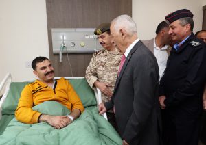 24-تشرين الثاني ـــــ مندوبا عن جلالة الملك عبدالله الثاني، القائد الأعلى للقوات المسلحة، اطمأن رئيس الديوان الملكي الهاشمي يوسف حسن العيسوي اليوم ، على الوضع الصحي لرجال الأمن العام، الذين تعرضوا لإصابات بحادثة إطلاق النار على إحدى دوريات الأمن العام العاملة في منطقة الرابية.