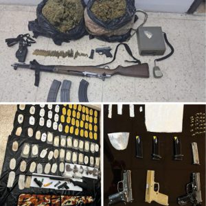 وأكّد الناطق الإعلامي أنّ أولى وأبرز تلك القضايا نفذتها قوة أمنيّة خاصة داهمت مكان وجود ثلاثة مطلوبين مصنفين بالخطرين وممن يرتبطون بعصابات إقليمية للاتجار وتهريب المخدرات في منطقة منشية الغياث في لواء الرويشد وألقت القبض عليهم وضُبط بحوزتهم عدد من الأسلحة النارية وكميات من المواد المخدرة .