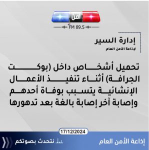 ضابط عمليات السير أشار في حديثه لإذاعة الأمن العام إلى التعامل خلال الفترة الصباحية مع بعض العوائق المرورية والتي تمثلت بتعطل بعض المركبات وحوادث مرورية اقتصرت على أضرار مادية أبرزها التعامل مع حادث مروري على مخرج الشعب باتجاه الثامن و التعامل مع تعطل إحدى المركبات على بداية جسر الأمير هاشم للسير القادم من جهة المخدرات .