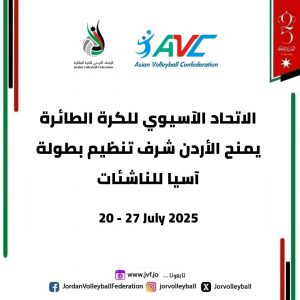 منح الاتحاد الآسيوي للكرة الطائرة، شرف تنظيم بطولة آسيا للناشئات إلى الاتحاد الأردني التي تقام من 20 ولغاية 27 تموز المقبل.