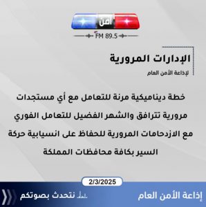 وأكد على الانتشار الواسع لمرتبات الدوريات على الطرق الخارجية على مدار ال24 لمتابعة الحركة المرورية وللدلالة والإرشاد ولمراقبة الحركة المرورية لضمان انسيابية الحركة المرورية بالشكل المطلوب ولضبط المخالفات الخطرة ابرزها السرعات العالية ومخالفات المسارب التجاوزات الخاطئة والأولوية والرخص والحمولات الخطرة …