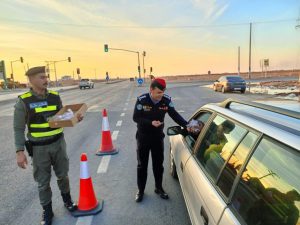 ومن جهة أخرى، تواجد رجال الأمن ومن مختلف الوحدات والتشكيلات في طرق المملكة لتهنئة المواطنين بالشهر الفضيل، وتقديم الماء والتمور وتقديم النصح والإرشاد.