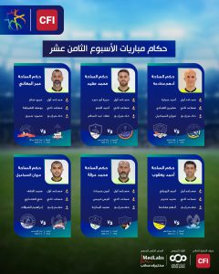 كما أعلنت دائرة الحكام أسماء الطواقم التحكيمية التي ستتولى إدارة مباريات الجولة 18 على النحو التالي: مباراة السلط والجزيرة التي ستجرى غدا: الحكام: أدهم مخادمة للساحة، الحكام المساعدون أحمد سمارة، صابرين العبادي، مروان السماعيل رابعاً.