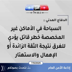 وفي هذا السياق، أكد العقيد أحمد الزيادات، مدير دفاع مدني غرب عمان، في حديثه لإذاعة الأمن العام عبر برنامج “بين السطور”، أن السباحة في المناطق غير المخصصة كالسدود والبرك الزراعية تُعدّ من السلوكيات الخطرة التي تهدد حياة المواطنين، مشيراً إلى أن تلك المناطق، رغم التحذيرات المتكررة، لا تزال تشهد وقوع وفيات مؤلمة، بسبب الثقة المفرطة أو الإهمال في الرقابة، خصوصًا على الأطفال.