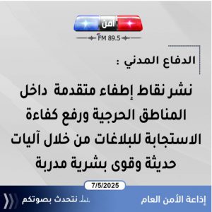 **الدفاع المدني: نشر نقاط إطفاء متقدمة داخل المناطق الحرجية ورفع كفاءة الاستجابة للبلاغات، من خلال آليات حديثة وقوى بشرية مدربة.