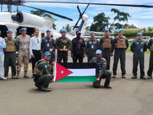 واصلت وحدة الطائرات العمودية الأردنية (الكونغو/1) تنفيذ العديد من المهام الجوية والبرية بنجاح، خلال الأسابيع الماضية، ضمن عمليات إسناد بعثة الأمم المتحدة لتحقيق الاستقرار في شرق جمهورية الكونغو الديمقراطية، للتخفيف من آثار الصراع على السكان المحليين.