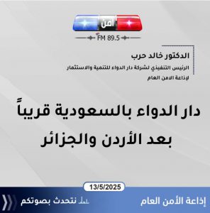 وأضاف في حديثه لإذاعة الأمن العام أن دار الدواء ليست مجرد شركة أدوية بل هي قصة نجاح امتدت على مدار 50 عاما في ظل القيادة الهاشمية وتم بناءها على الإيمان بالكفاءات المحلية والتزامها بأعلى معاير الجودة المحلية والعالمية .