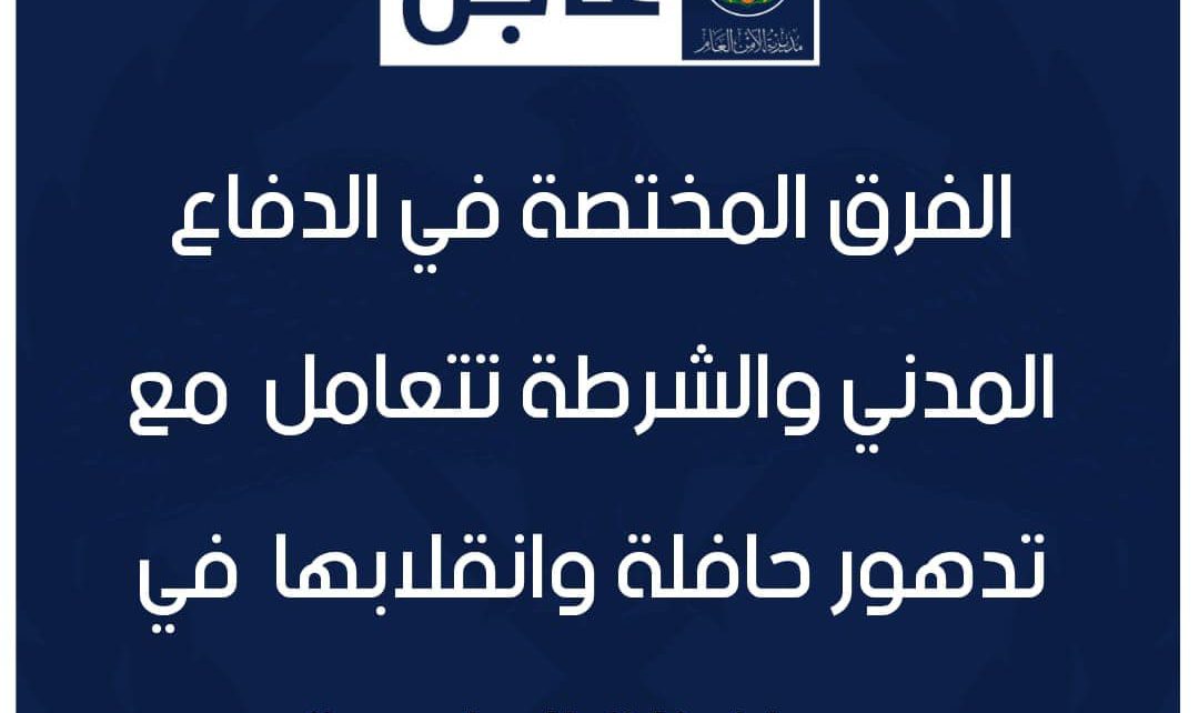 الفرق المختصة في الدفاع المدني والشرطة تتعامل مع تدهور حافلة وانقلابها في محافظة العاصمة