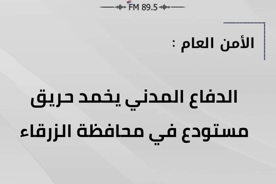 الدفاع المدني يخمد حريق مستودع في محافظة الزرقاء